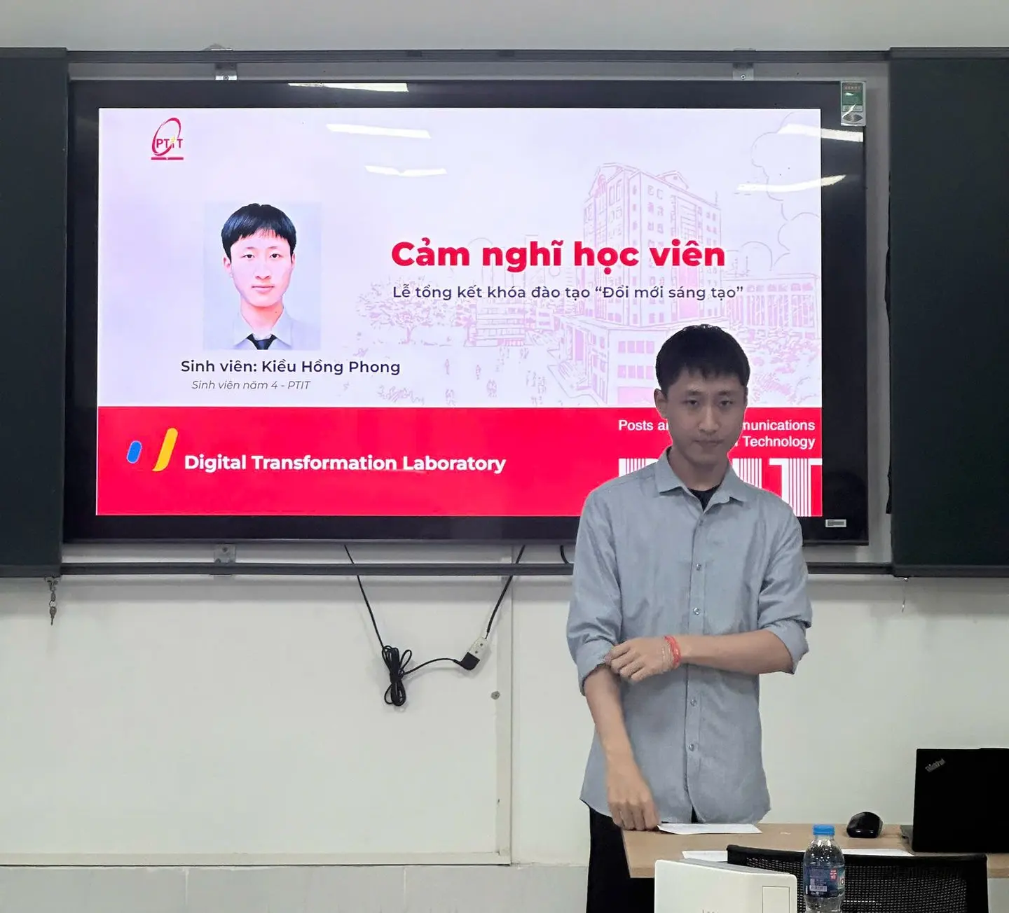 Đại diện sinh viên đạt Giải Xuất sắc – Kiều Hồng Phong đã có phần chia sẻ chân thành về trải nghiệm học tập, lợi ích của mô hình AI & Microlearning và tinh thần chủ động học tập trong bối cảnh giáo dục số.
